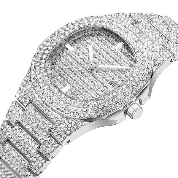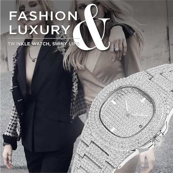 - Design de la montre glacée : entièrement sertie de strass brillants sur le boîtier et une partie du bracelet. Affichage de la date à 3 heures. Design simple et élégant qui vous entoure de regards envieux partout où vous allez.